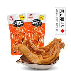 泡椒鳳爪全自動(dòng)給袋式真空包裝機(jī)配置自動(dòng)潤(rùn)滑系統(tǒng),10工位+12航空鋁雕洗的真空腔體,袋寬規(guī)格自動(dòng)調(diào)整,觸摸屏操作,可用于多種自動(dòng)填充裝置,包裝速度可達(dá)50包/分,封口方式瞬間加熱封口,水冷,封口美觀,可用于豆制品、肉制品、蛋制品、醬腌菜等休閑食品