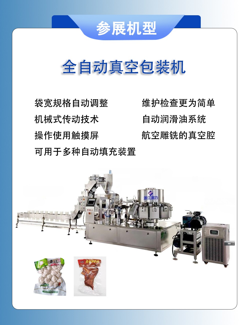 浙江潤立智能科技有限公司提供粉末包裝機(jī)、 給袋式包裝機(jī)、全自動包裝機(jī)、自動顆粒包裝機(jī)、液體包裝機(jī)、醬腌菜包裝機(jī)、自動食品包裝機(jī),推薦選用以下產(chǎn)品